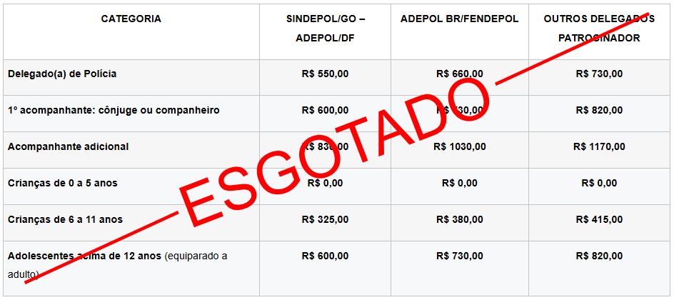 CATEGORIA | SINDEPOL/GO – ADEPOL/DF | ADEPOL BR/FENDEPOL | OUTROS DELEGADOS PATROCINADOR |